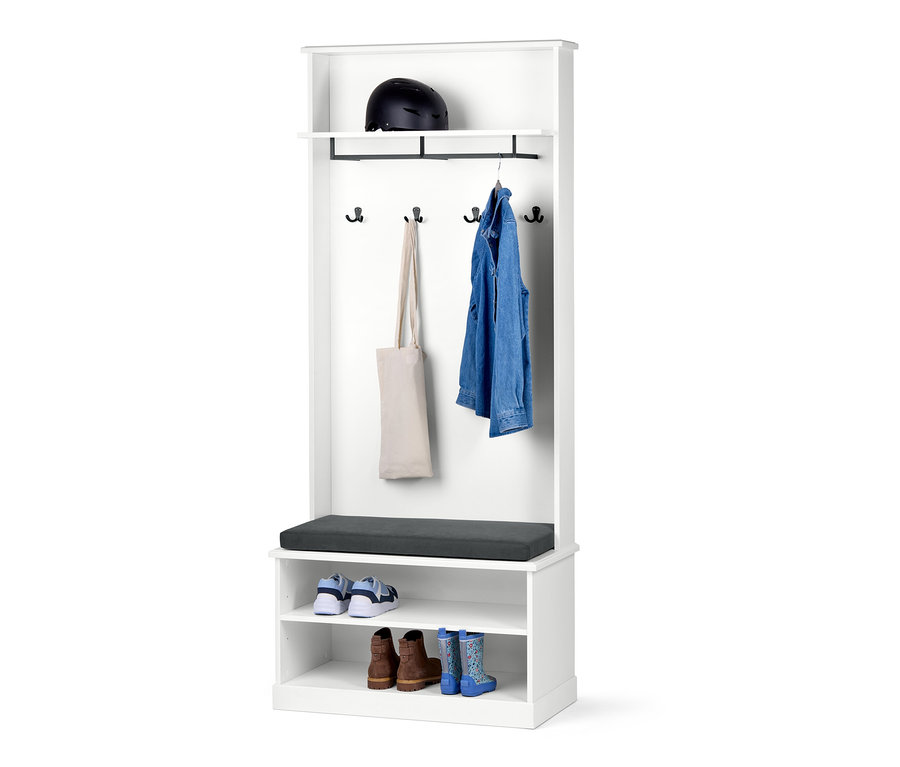 - Kiegészítő tárolófelületet és kompakt tárolóhelyet biztosít az előszobában és a bejárat melletti területen