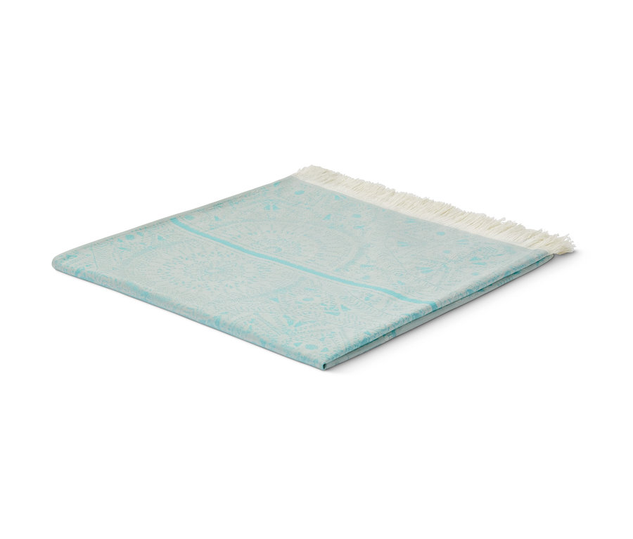 - Mutatós, stílusos mintával díszített, rojtos szaunatörölköző