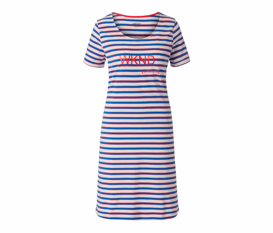 Női hálóing, feliratos, csíkos