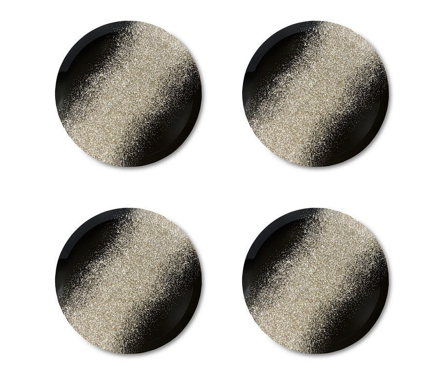 Ha meg szeretné akadályozni, hogy csúnya pohárnyomok és vízfoltok jelenjenek meg az asztalon, akkor ezek a poháralátétek csodálatos lehetőséget biztosítanak mindehhez. A - kényes felületek védelmére szolgáló - sötét filcből és aranyszínű csillogó díszítéssel készült üvegből álló alátétek bármely étkezőasztalt elegánssá tesznek. Ezen kívül a mutatós és kör alakú alátétek egyenként tíz centiméter átmérőjűek.