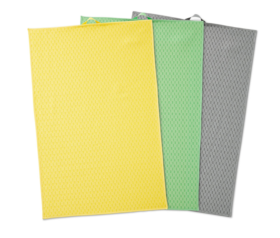 Mindhárom kendő egy hosszú szálú oldallal rendelkezik az egyenetlen felületekhez és egy finoman strukturált oldallal a sima felületekhez. Kiválóan használhatók tükrökön, csempéken és ablakokon, a mikroszálas tartalomnak köszönhetően pedig nem bolyhosodnak. Ezen kívül a szálak tartóssá, jó nedvszívóvá és gyorsan száradóvá teszik a törlőkendőket.