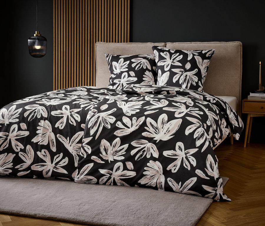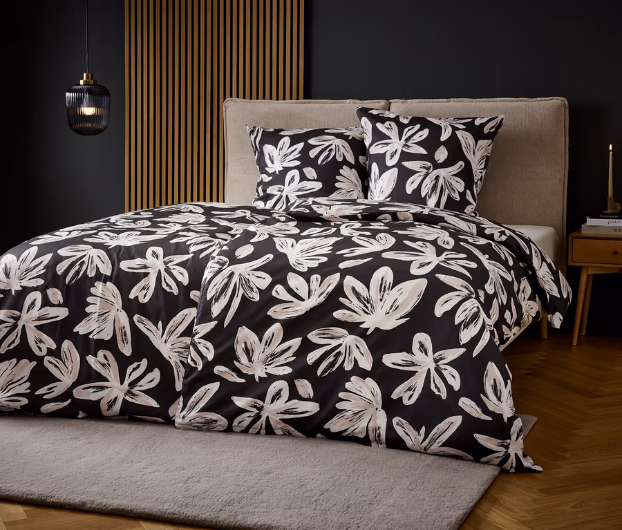 Szatén ágynemű, mintás, antracit, egyszemélyes