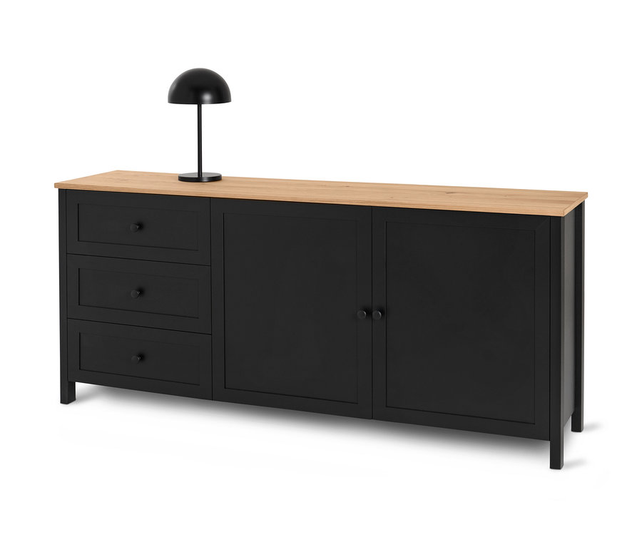 Komód, 2 ajtós, 3 fiókos, fekete, "Clara"
