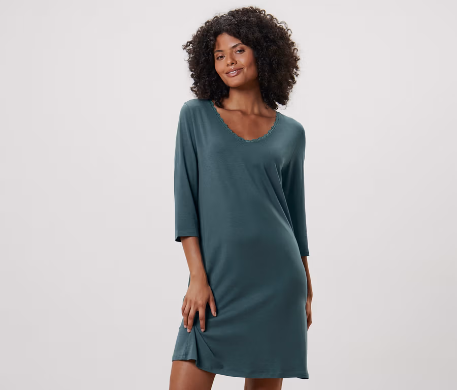 Női 3/4-es ujjú hálóing, csipkés, olajkék