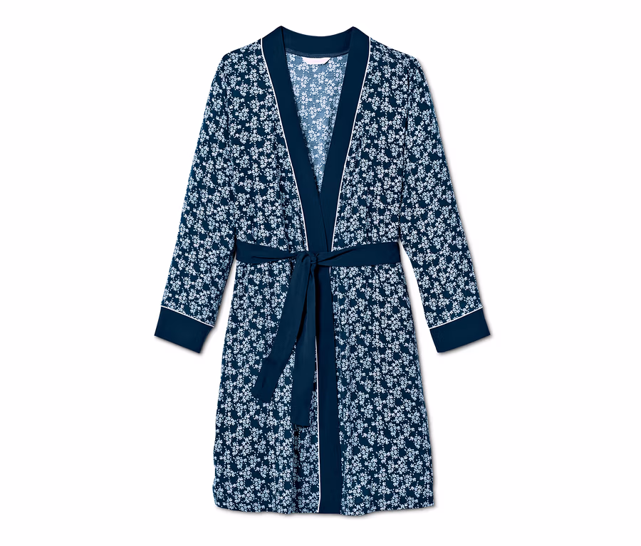 Női kimonó, virágos, sötétkék