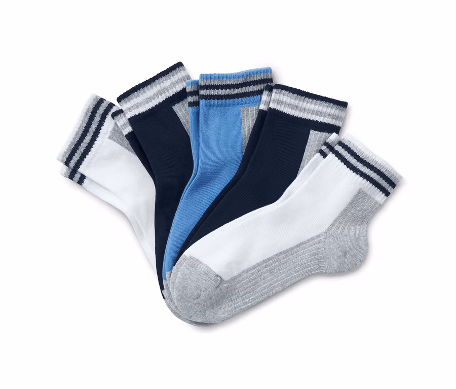 Ennek az öt pár zokninak köszönhetően a gyerekek mindent beleadhatnak a sportba. A belül puha frottírtalppal rendelkező zoknik magas pamuttartalmuknak köszönhetően bőrbarát tulajdonságúak. A széles, kényelmes szegély anélkül illeszkedik, hogy szorítana, a lábujjaknál található különösen lapos varrás pedig alig érezhető. A zoknik orrhegye és sarokrésze megerősített. A gyerekzoknik biopamuttal készültek, az elasztán pedig formatartásról, tökéletes illeszkedésről és rendkívül kényelmes viseletről gondoskodik.