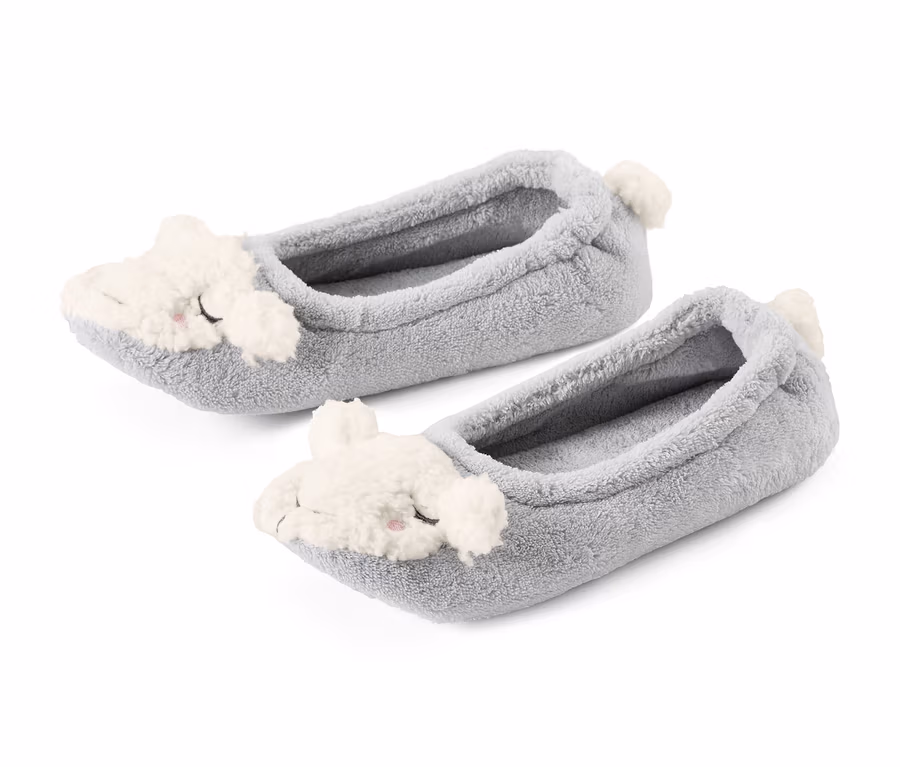Hideg lábak? Hol van az már! Ez a puha plüssből készült balerina házicipő jó melegen bebugyolálja a lábakat, amelyek így különösen bájosan mutatnak. A 3D-s fülekkel és rávarrt farokkal ellátott házicipő igazán aranyos, a csúszásgátló kialakítással készült járótalp pedig biztos járásról gondoskodik.