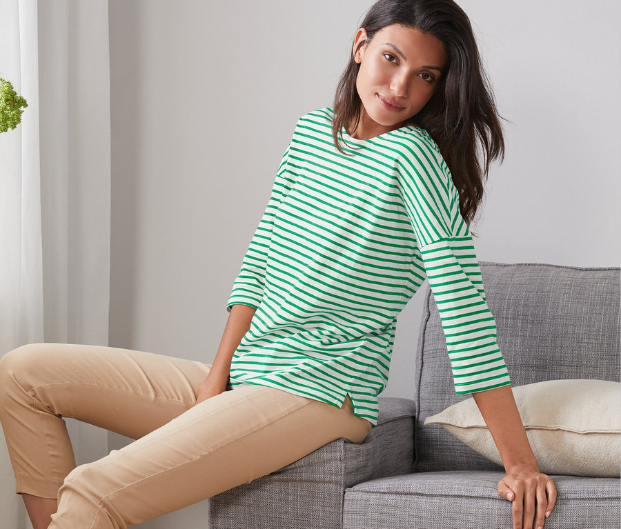 - Ejtett vállak rávarrt, 3/4-es ujjakkal