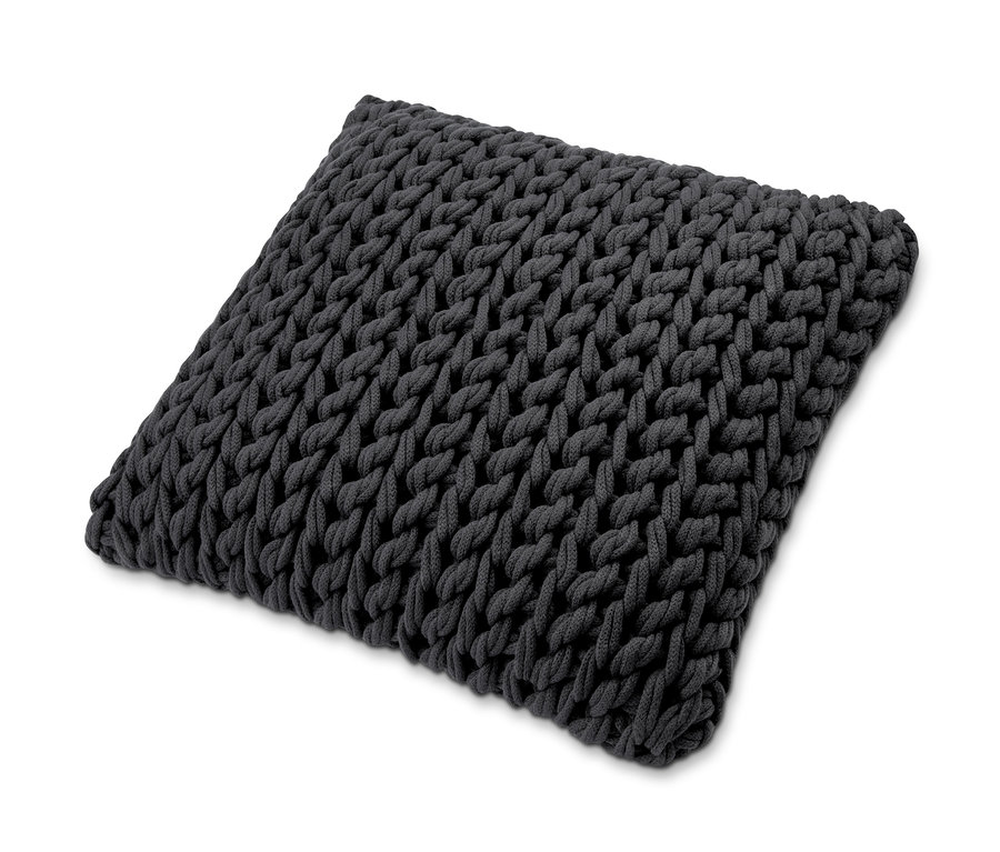 Díszpárnahuzat, kötött, sötétszürke