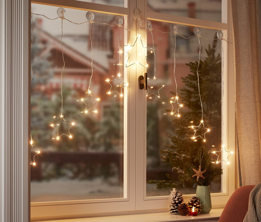 - 9 melegfehér fénnyel világító csillag a hangulatos ablakdekorációhoz
