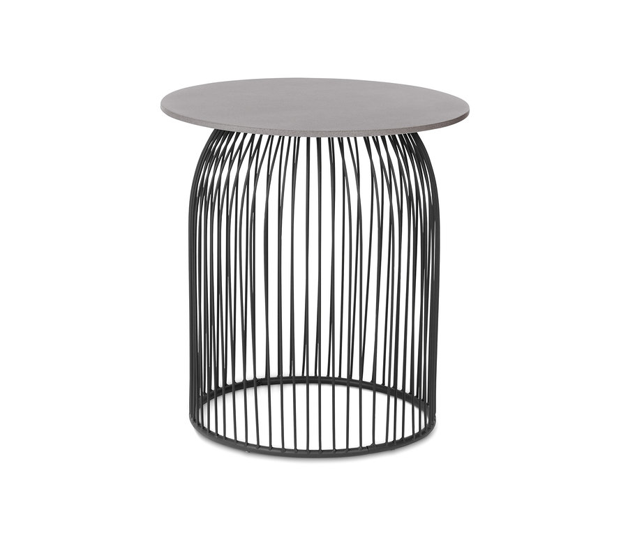 A modern betonhatású kerti asztal rendkívül sokoldalú - időjárásálló és könnyen kezelhető policementből álló kerek asztallapjával kertben és teraszon, valamint beltéren egyaránt használható. A bútordarab párhuzamosan futó, fekete fémrudakból álló nyitott keretén található talpak magassága állítható.