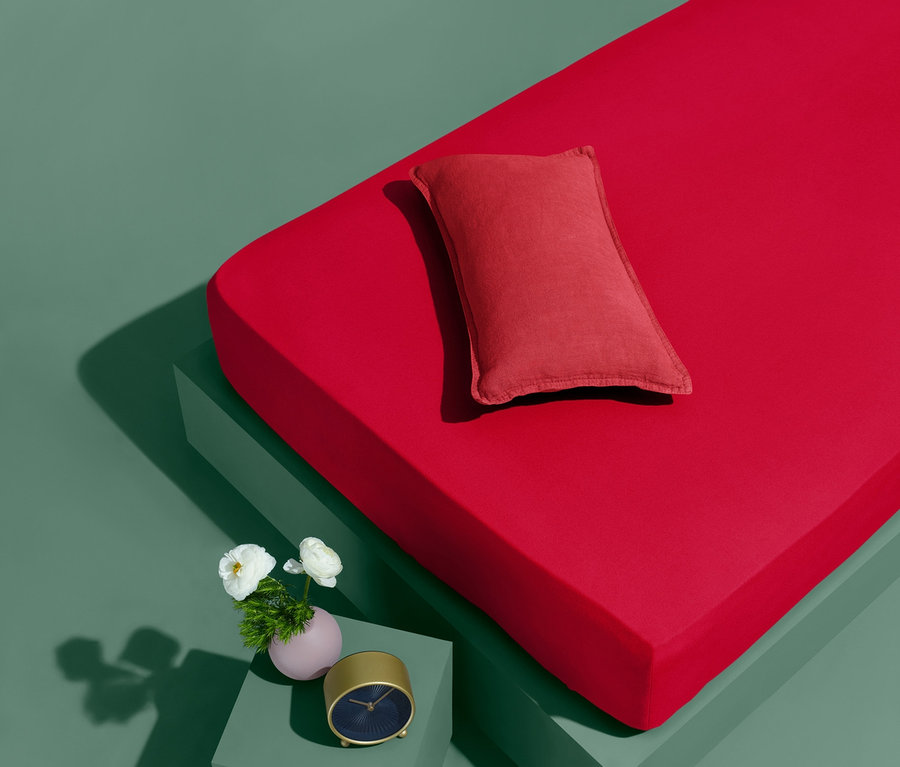 Gumis jersey lepedő, piros, dupla