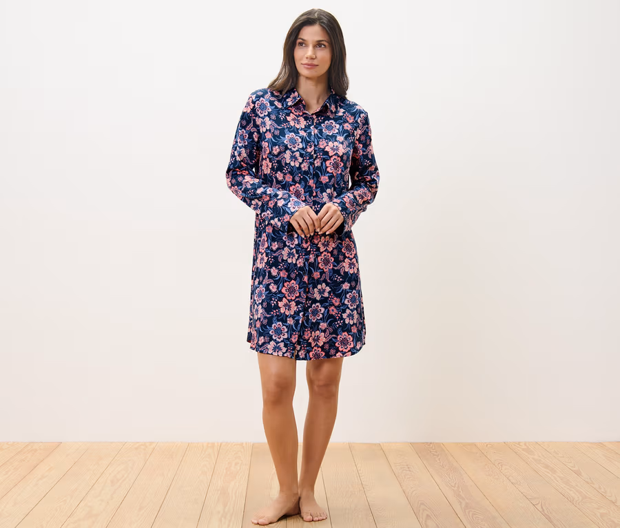 Női szövött hálóing, gombos, virágos