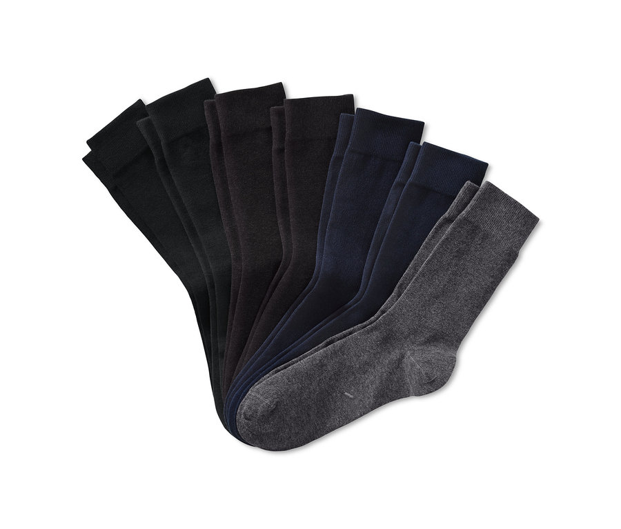 Hét nap, hét pár zokni – ezzel a szettel a férfiember egész hétre el van látva zoknival. A biopamutból készült zoknik kiváló minőségűek, szegélyük rugalmas és csúszásbiztos, orrvarrásuk pedig extra lapos. A nagyobb igénybevételnek kitett orr és sarok megerősítéssel van ellátva. A szett négy különböző, visszafogott színt tartalmaz, és a zoknikon praktikus, a párosítást megkönnyítő jelzések találhatók. Így a párok mosás után könnyen egymásra találnak.