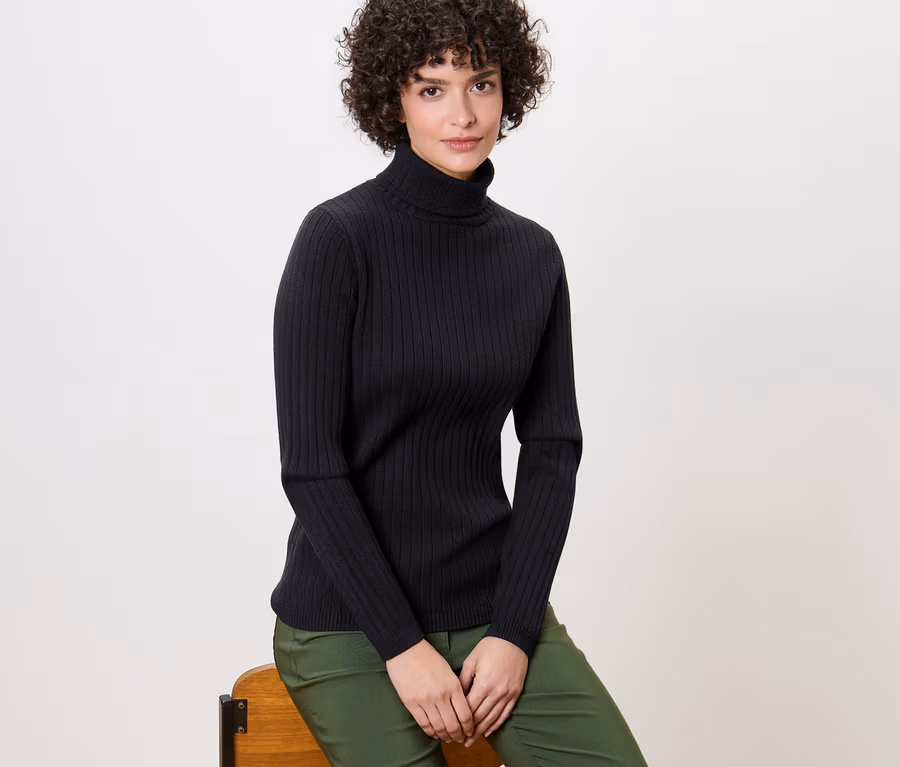 Garbónyakú, bordás kötésű pulóver, fekete