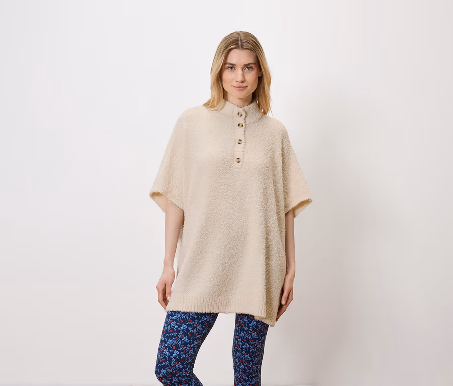 Női plüssponcsó, krém