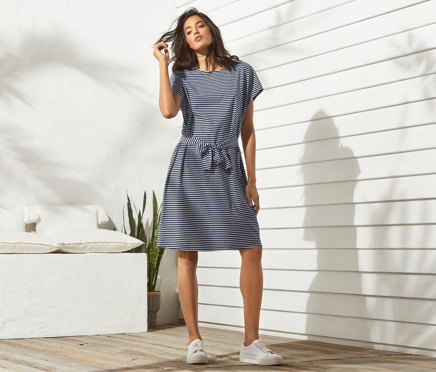 Női dzsörzéruha, csíkos, sötétkék/fehér