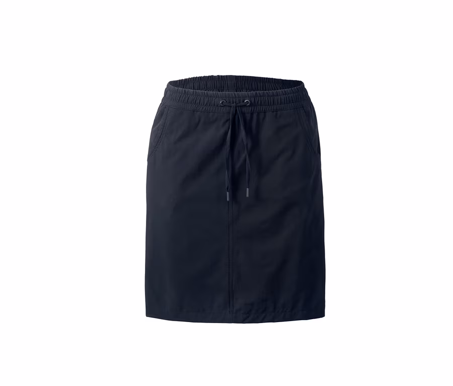 Ez a funkcionális szoknya ideális és sokoldalú ruhadarabként hordható minden szabadtéri öltözékhez. Könnyű, rugalmas, strapabíró anyaga különösen kényelmes viseletet biztosít és környezetbarát ecorepel® impregnálással készült. A két oldalhasíték szabadabb mozgásról gondoskodik, a széles, rugalmas, kényelmes derékrész kényelmesen illeszkedik, ezen kívül rejtett húzózsinórral és megkötővel is ellátták. A szoknyán oldalt két bevágott zseb, hátul pedig egy cipzáras farzseb található.