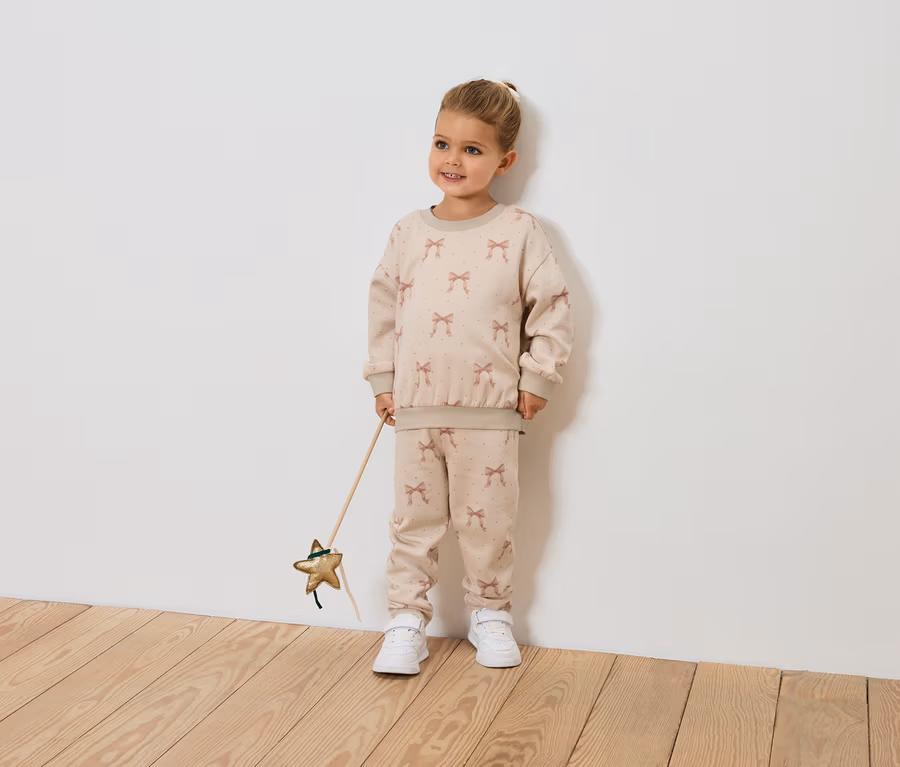 - Krémszínű, pasztellrózsaszín masnis nyomott mintával