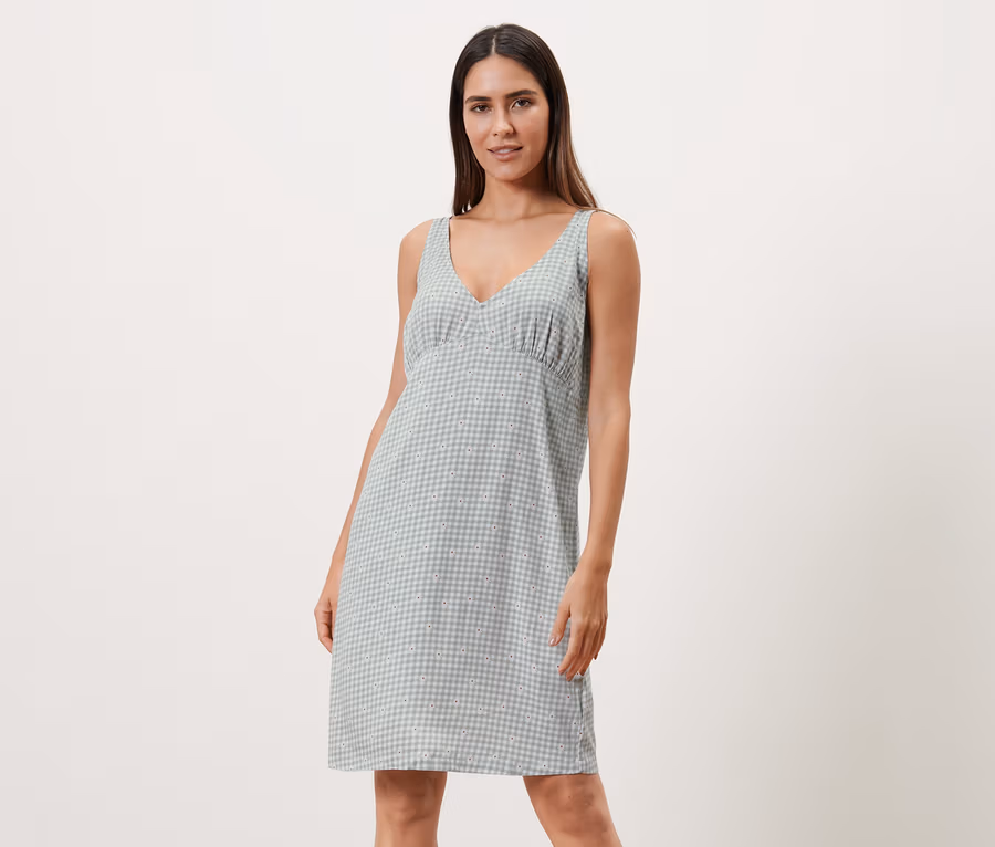 Női hálóing, kockás, zöld/fehér