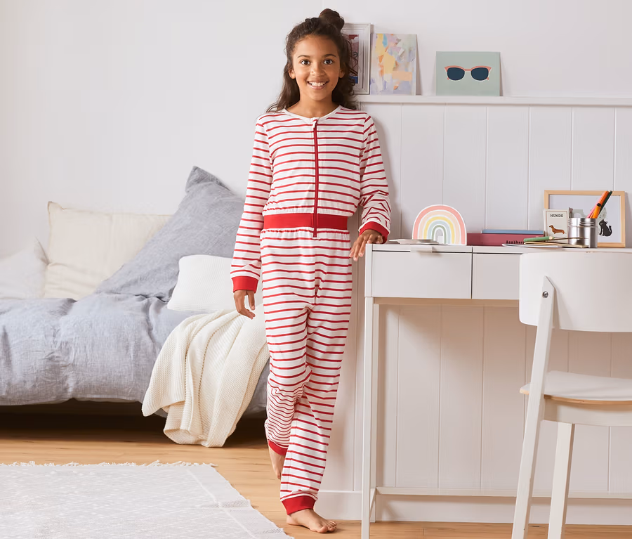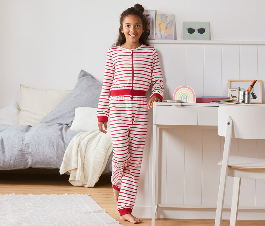 Lány egyrészes pizsama, csíkos, piros