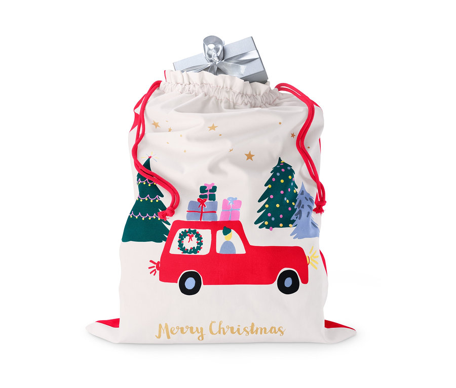 Karácsonyi ajándékzsák, autós, 67 x 50 cm