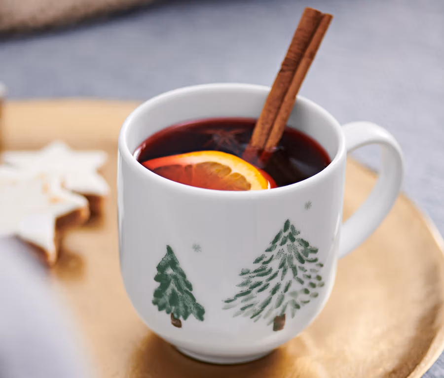 Porcelán bögre, fenyőfa mintás