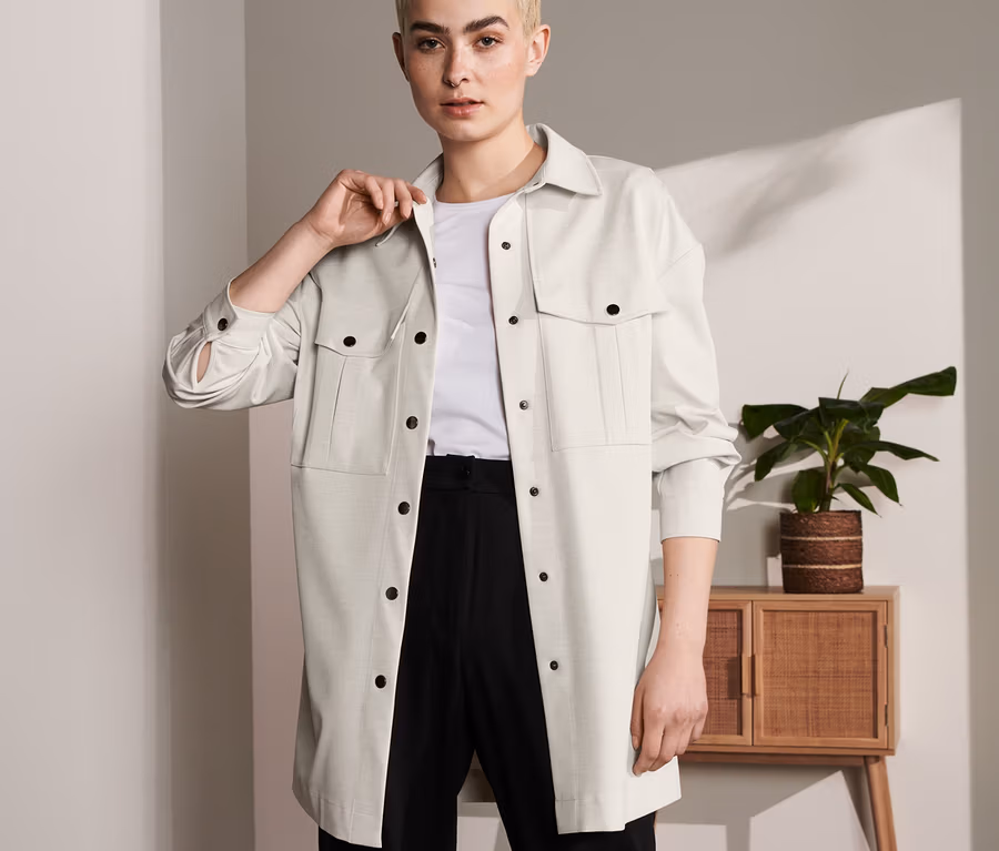 - 38% poliészter, 32% viszkóz (Lenzing), 25% poliészter (újrahasznosított), 5% elasztán