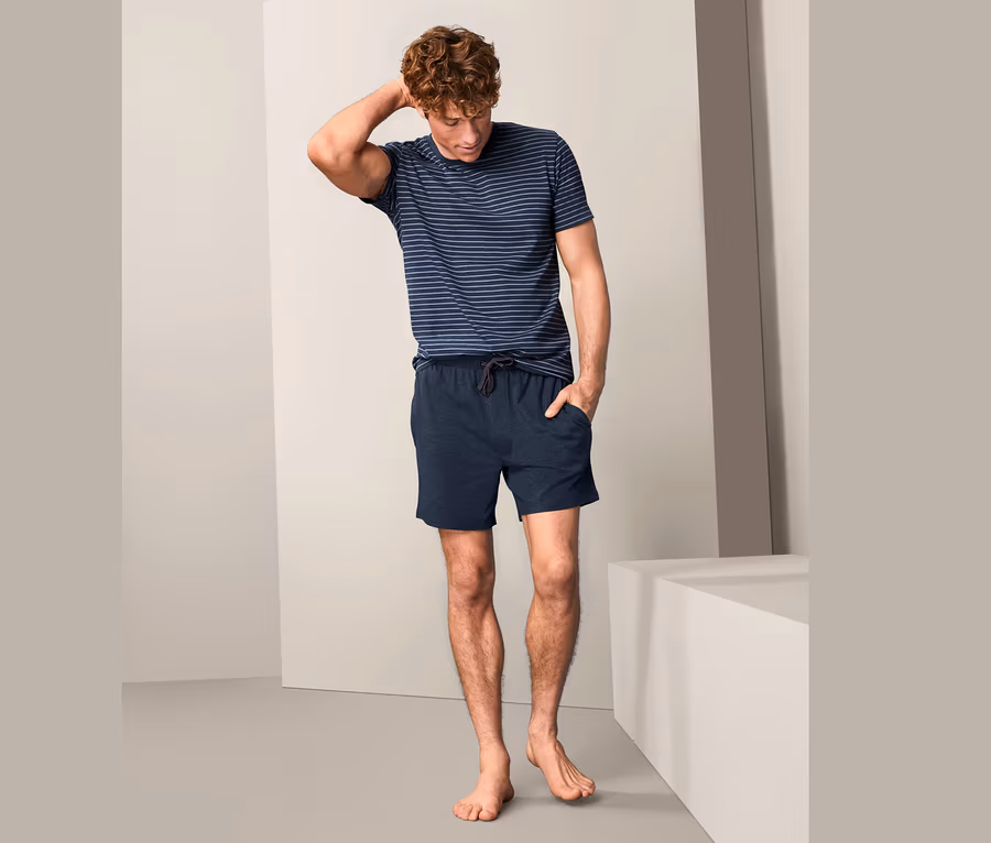 Férfi rövidnadrágos, pizsama, csíkos, sötétkék
