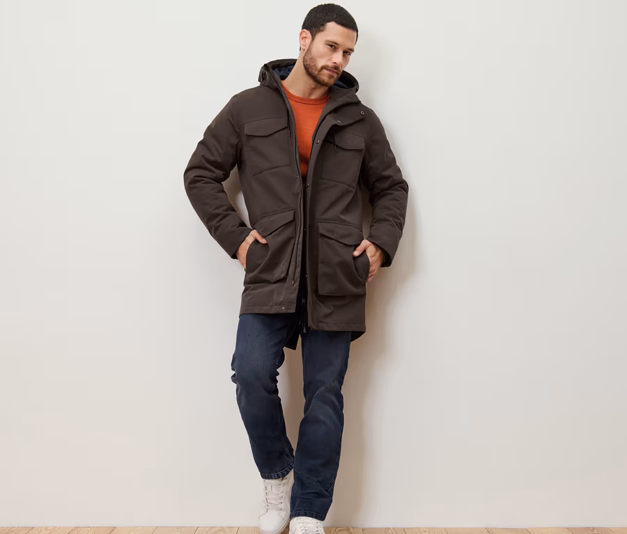 Férfi parka kabát, sötétbarna