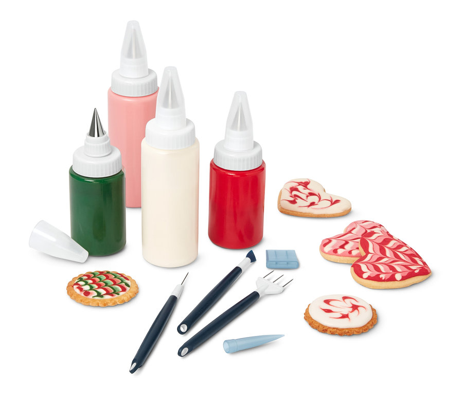 - Egyszerűen felvihetők a tojásfehérjéből készült nyomócsöves glazúrok – pl. kekszek és torták díszítéséhez