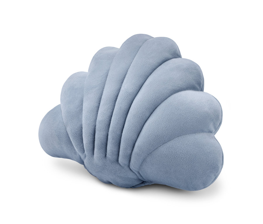 Kagyló alakú díszpárna, világoskék, 35x30 cm
