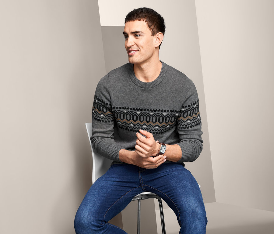 - Férfi pulóver divatos norvégmintával - univerzálisan használható felsőrész őszre és télre