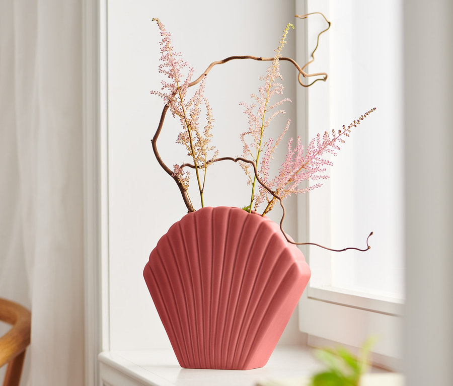 Váza, kagyló alakú, terrakotta, 18,5cm