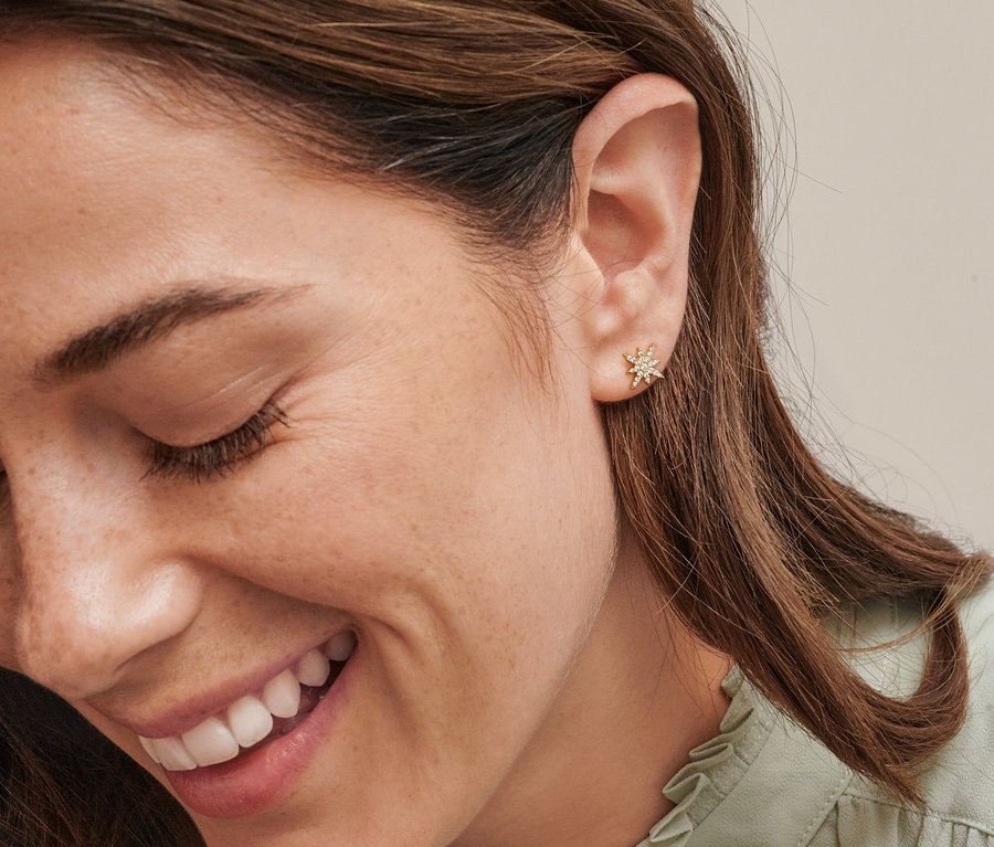 Női arany csillag beszúrós fülbevaló, cirkóniával