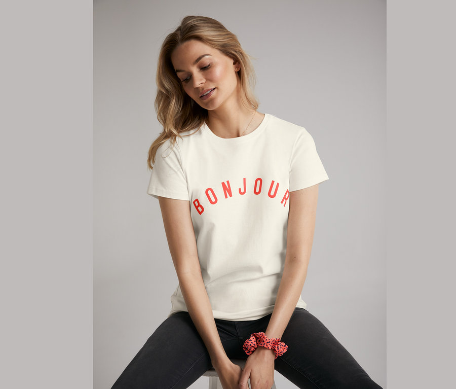 Női póló, "BONJOUR", fehér