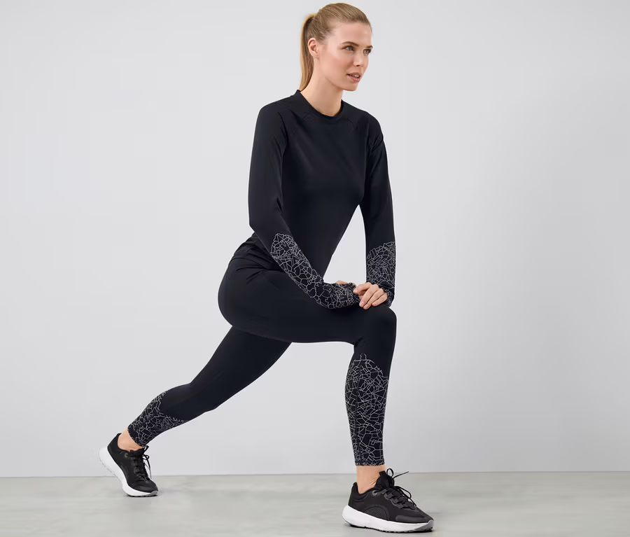 • Fényvisszaverő ezüstszínű nyomott mintával a lábszárnál