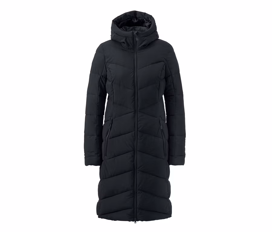 Női hosszú steppelt kabát, fekete