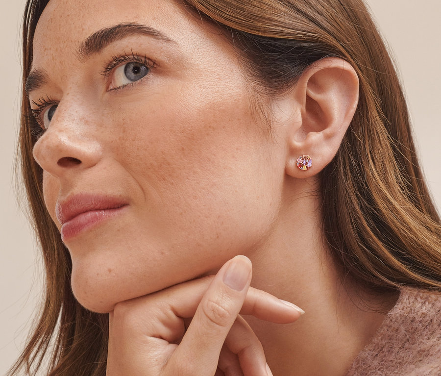 Beszúrós fülbevaló, rózsaszín arannyal bevont 925-ös ezüst, színes cirkóniával