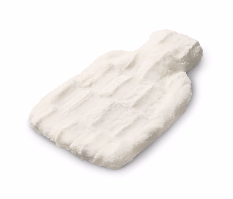 - Fehér melegvizes palack, krémszínű huzat
