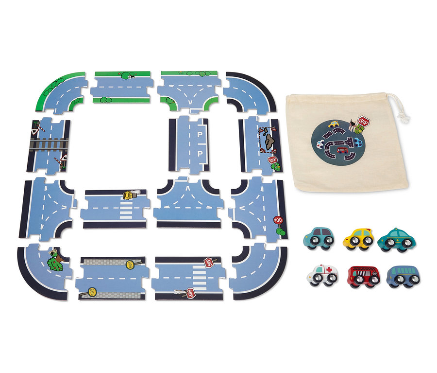 - 15 nagyméretű, összeilleszthető darabból álló játékpálya