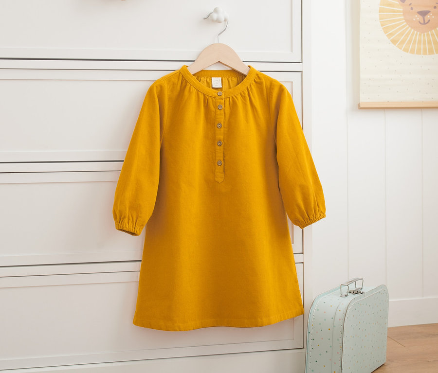 Kislány kordbársony ruha, sárga