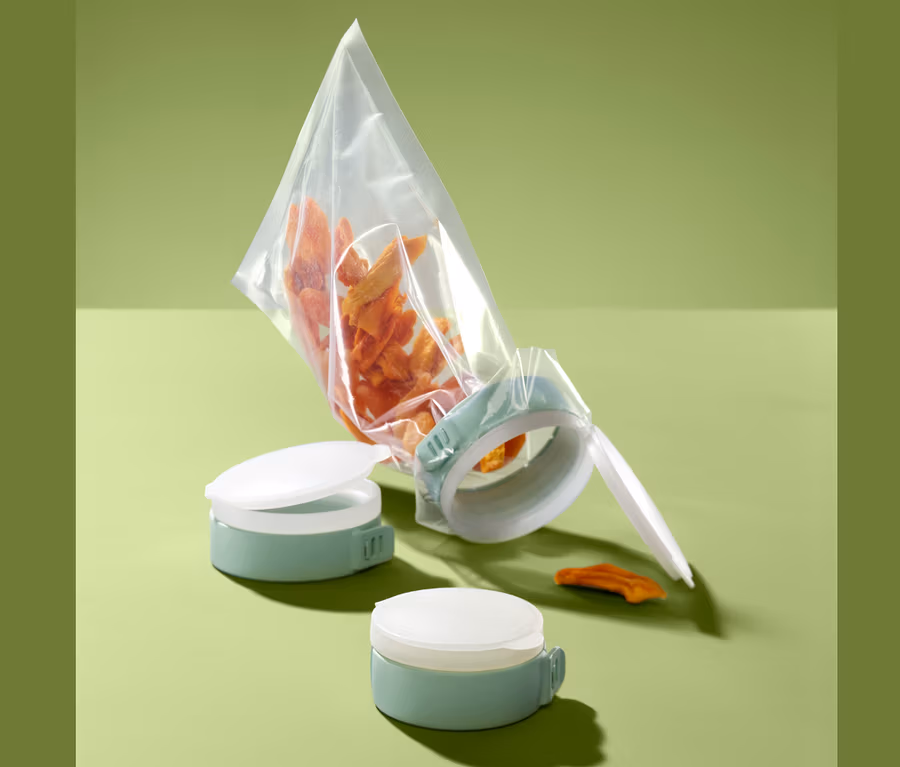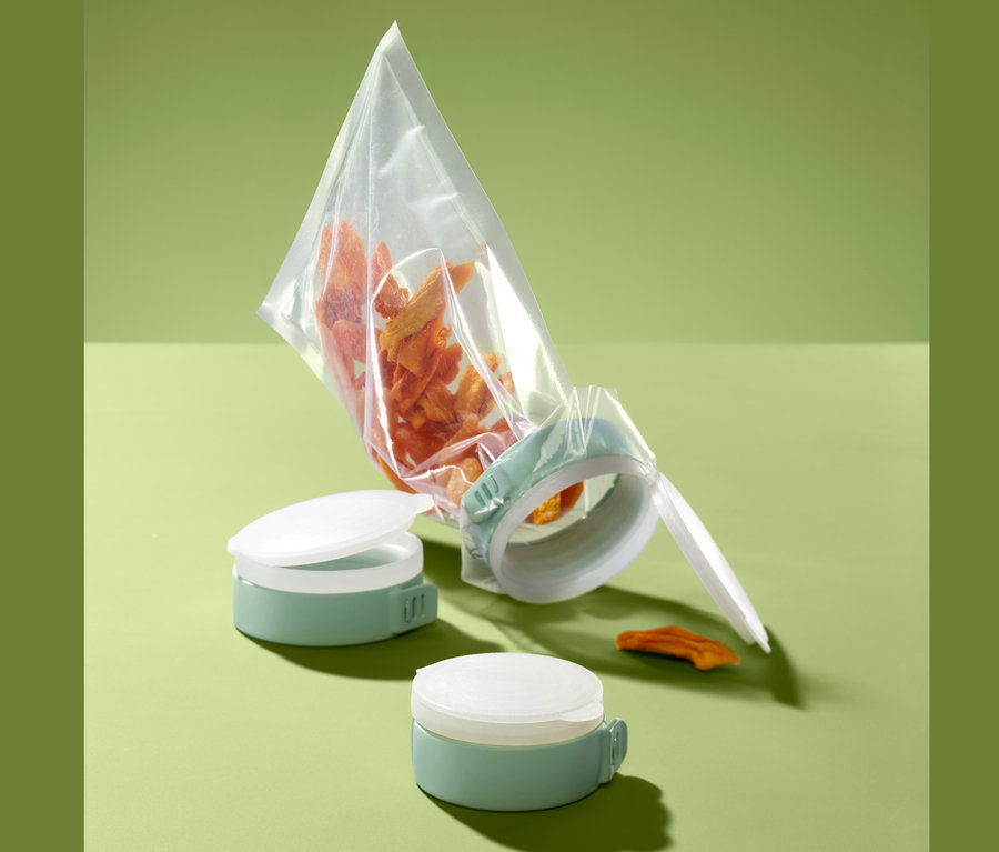 A frissentartó tasakok még jobban megőriznék tartalmuk frissességét, ha megfelelően le lehetne zárni őket. Ezeket a praktikus konyhai segédeszközöket pont erre tervezték: csak húzza át a zacskó nyílását a gyűrűn, majd hajtsa rá a fedelet - a zacskó így máris visszazárható nyílással rendelkezik, tartalma pedig megőrzi aromáját.