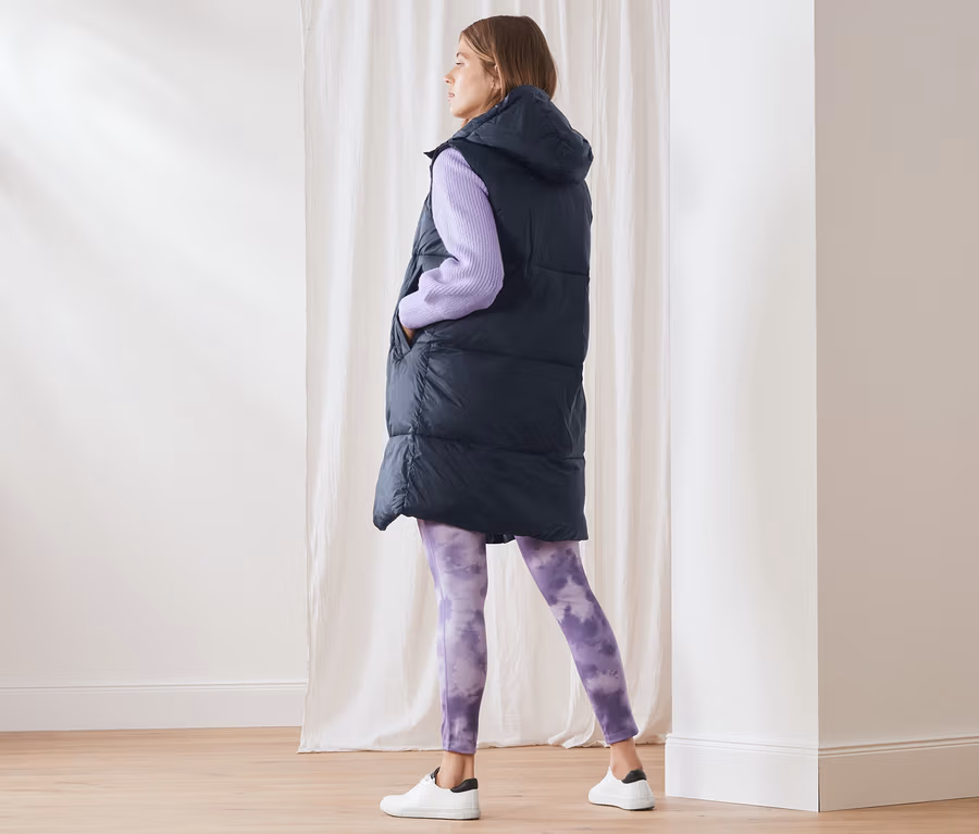 Női hosszú steppelt mellény, sötétkék