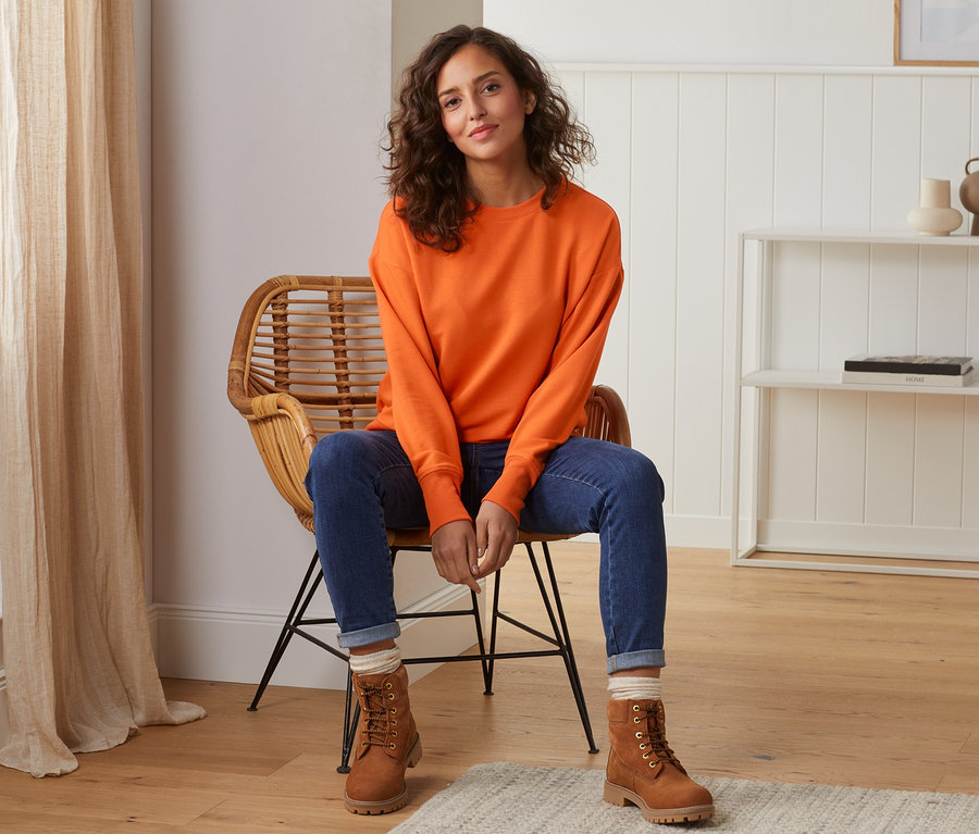 - Kényelmes szabás bordás kötésű szegéllyel a nyakkivágásnál, az ujjaknál és a derékrészen