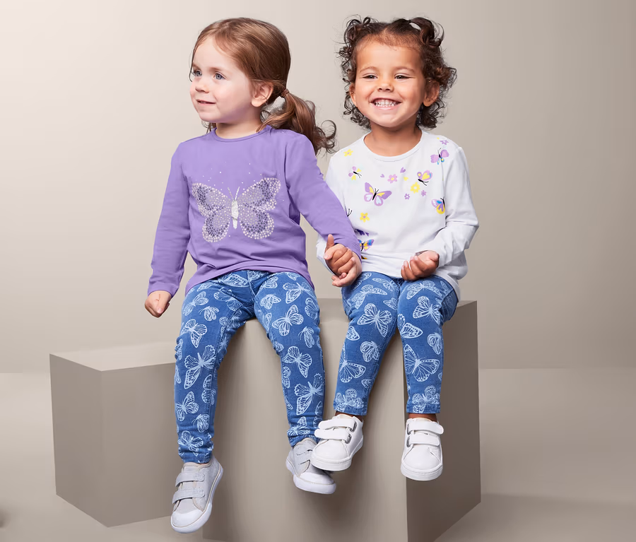 2 kislány hosszú ujjú felső szettben, pillangós