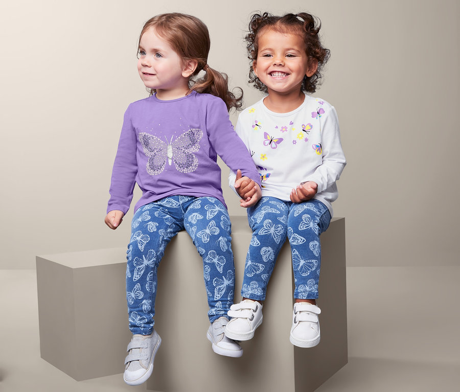 A gyerekek szeretik a pillangókat - ez esetben pedig egyszerre kettő is jár belőle: a magas biopamut-tartalmú single-jersey anyagból készült két hosszú ujjú felső szaladgálás vagy játszás közben is különösen kellemesen simul a bőrre.