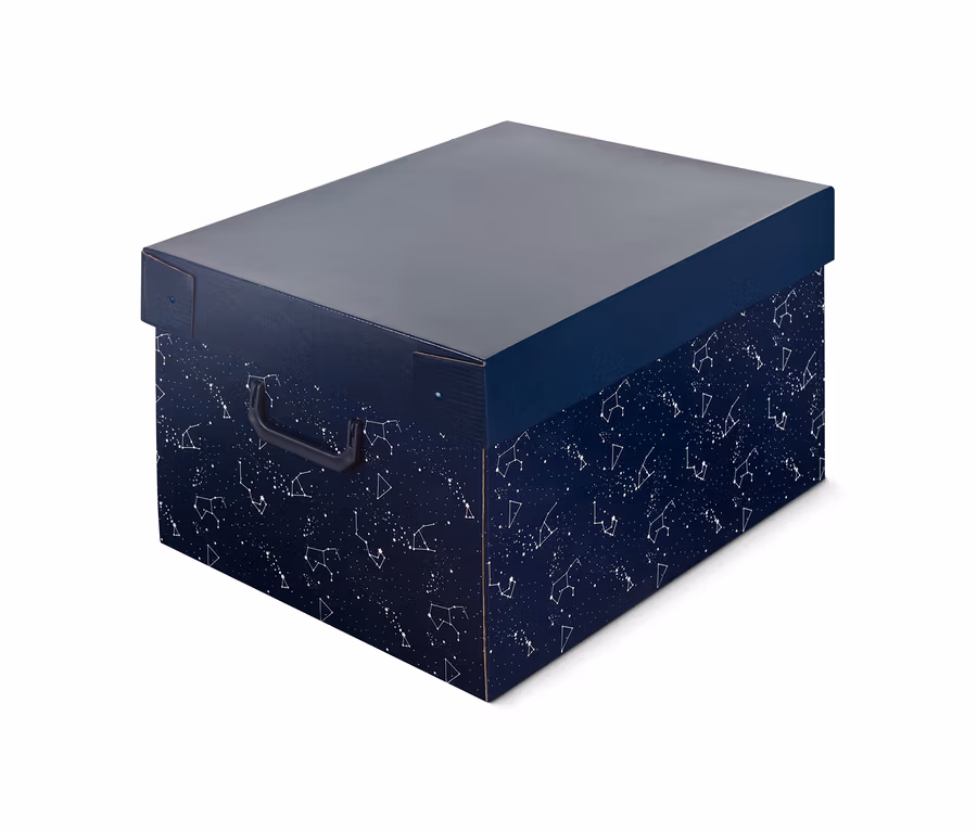 - Sötétkék doboz aranyszínű mintával