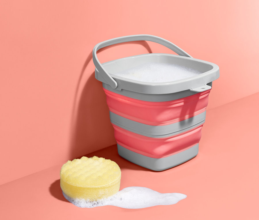 Ez a vödör pillanatok alatt összehajtható: ha szükség van rá, gyorsan kéznél van - ha pedig nincs, akkor nem áll az útban. Összehajtva minden szűk helyen elfér, akasztójával könnyen hozzáférhetően tárolható a falra akasztva. A szögletes vödör körülbelül öt liter űrtartalmú, tökéletes használatot biztosít kisebb lakásokban, de utazáskor és kempingezéskor is helytakarékosan magával viheti. Stabil, erős műanyagból készült, a szennyeződések pedig egyszerűen, nedves ruhával letörölhetők.