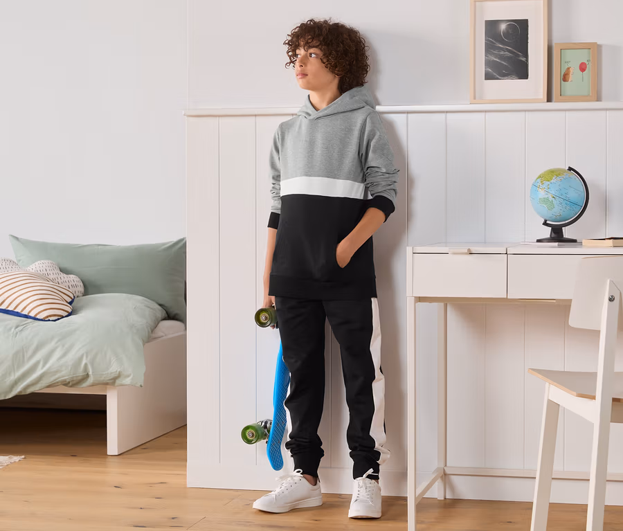 - Sűrű szövésű anyag puhán bolyhozott belső oldallal
